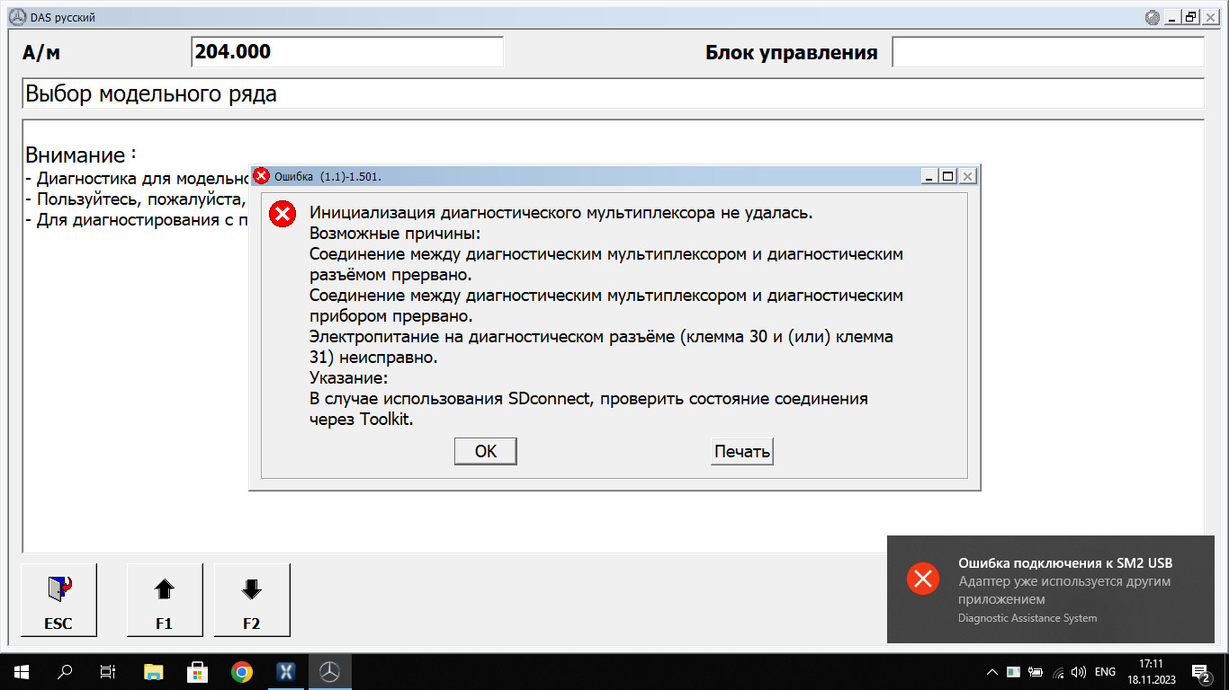 Скорее всего придётся переустанавливать Xentry.Das Offline версия 1.1 переустановилась.